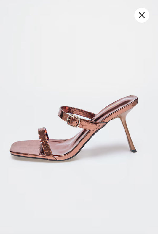 Bronze Croc PU Square Toe Strappy Heeled Mule Sandals