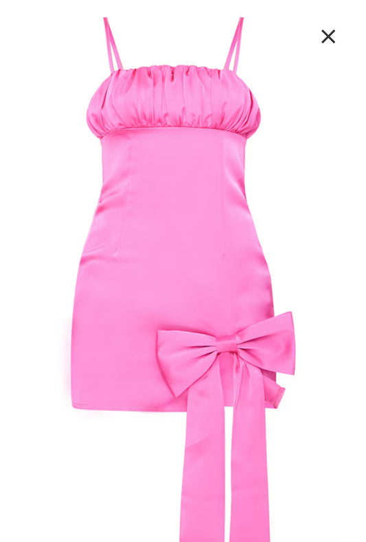 Pink Satin Bow Detail Mini Dress
