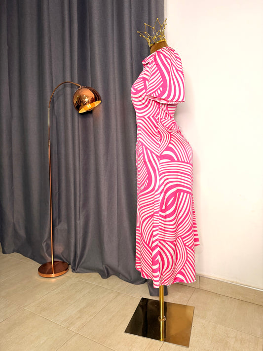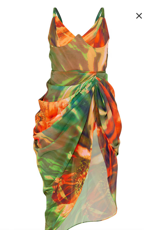 Bright Green Abstract Underwire Detail Draped Midi Dress
