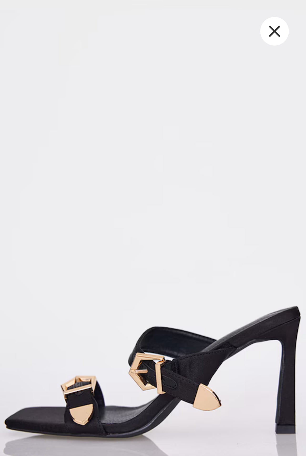 Black Satin Wide Fit Square Toe Buckle Strap High Stiletto Heeled Mules