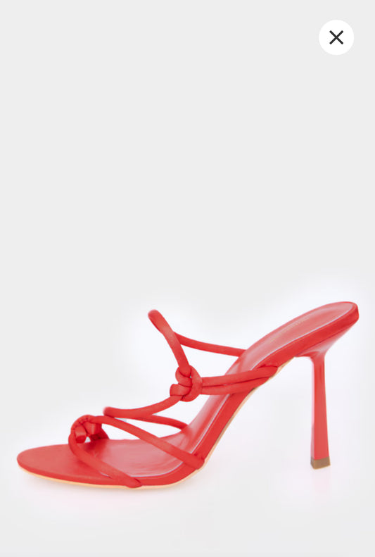 Red Satin Round Toe Heeled Mules