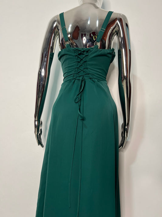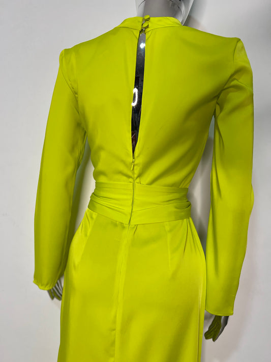 Bright Green Abstract Underwire Detail Draped Midi Dress